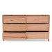 Messmate construction with solid wood front Complete all-natural finish with deep wood patterns throughout 6x wood slat drawers on metal rails for smooth access Dresser top with precise curved design and square-leg base 6x wood slat drawers on metal rails for pull to open access Applicable for commercial use 1 year warranty Product is fully assembled Note: Due to the nature of messmate wood, strong grain patterns and characteristics are to be expected. Messmate varies in colour, ranging from pale browns and peach to light yellows, while the sapwood is a pale yellow to pale brown. This blend creates a warm and rich exterior that is unique and cannot be replicated across products. The unique imperfections, markings and colouring are not inconsistencies and should be appreciated.