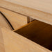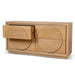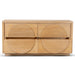 Engineered wood with oak veneer Dusty oak finish NC Lacquer coating Bold circular patterns Ample storage space Natural wood grain and texture Perfect for contemporary interiors Product comes fully assembled