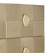 Elevate your interior with this luxurious three-drawer chest, finished in brushed gold with an intricate geometric design. The spacious drawers, complete with striking hexagonal handles, offer ample storage for clothing or essentials. Its sleek, open base enhances the modern aesthetic, making it a perfect addition to contemporary or eclectic spaces. Combining functionality with refined design, this chest of drawers ensures sophisticated organisation for any room.