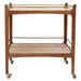 Elevate your space with the Ashley 2-tier bar cart, showcasing curved edges in a refined mid-century modern style. Crafted from a mix of birchwood, iron, and travertine, this bar cart offers two spacious shelves for serving drinks, displaying decor, or organising essentials. Sleek metal rails and smooth caster wheels provide both style and mobility. Available in walnut or black finishes, this versatile piece seamlessly complements modern, classic, or industrial interiors with timeless elegance.