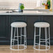 Perfectly proportioned for kitchens and beneath counter tops, this stunning kitchen stool takes urban oasis to new heights. Creating contemporary drama with its streamlined geometric white base, the Aiden kitchen stool is designed to offer comfort and quality with its neatly tailored natural linen mix cushion and varying height tubular steel footrests. Sleek and fresh, this stool is a chic addition to any interior.