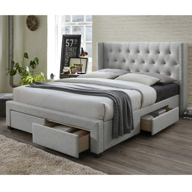 Indulge in the ultimate luxury with our Arvid king bed with drawers. This elegant and sophisticated bed is adorned with drawers, providing both sty...