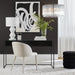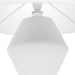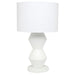 The Abstract Table Lamp features bold lines, creating a striking silhouette. The lamp base is crafted from resin and coated with a contemporary matte finish, emphasizing the angles of the form. This minimalist design is completed with a white linen drum shade. Note: finish may vary.