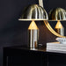 Boasting sophisticated mid-century styling, the Ajay table lamp is a modernistic accent to any interior. Crafted from metal with a matte brass finish, its arresting curves bring a fresh and trendy touch to any room.