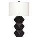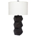 Mutli-faceted Table Lamp will add a strong presence to any room. Crafted from resin with a bronzed smooth finish and paired with a Natural Linen drum shade. This contemporary geometric table lamp would be suited to most settings. An interesting piece of work.