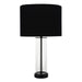 Elegantly illuminate your living space with the East Side Table Lamp. The clear glass body with matte bronze black metal rod and trim compliment the base. The contemporary interpretation of a classic lamp design. Our East Side lamp is offset with a black drum cotton shade.