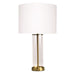 Inspired by modern moods with mesmerising metallic details, the East Side table lamp in brass is effortlessly elegant and adaptable to both contemporary and classic interiors. The sleek glass cylindrical base with brass finished detailing creates a sophisticated accent to the white drum shade, illuminating the space with gentle glamour. A total height of 61cm, the East Side table lamp floats lightly amongst its surroundings, working wonderfully in a bedroom, living room or flanking the ends of an entry console.