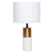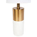 Citing inspiration from the luxury furnishings of a Mykonos resort, this table lamp pairs a cylindrical marble base with brass-finished accents and a White Linen Drum Shade.