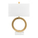 A simple beauty, the striking silhouette of the Olympic table lamp takes elegant aesthetics to new heights. A sculptural circular metal base in a gold painted finish adorns the white marble plinth. Atop with a rectangular linen look shade in warm white, the picture of stylish sophistication is complete with an elegant harp and finial fitting also in gold. With a height of 69cm, this substantial lamp creates a statement feature and oozes atmosphere when lit.