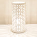 The cylindrical white ceramic base of this lamp boasts a lovely geometric pattern of alternating lines.It compliments your room with a clean modern look and ambient light.