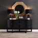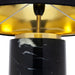 Introducing the Paola Marble Table Lamp - Black with Black Shade, a luxurious addition to any home decor. Made with a solid black marble body and a brushed gold base, this lamp exudes elegance and sophistication. The black linen shade is lined with reflective gold PVC, adding a touch of glamour to the overall design.