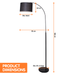 Sarantino Metal Arc Arm Floor Lamp Shade Black