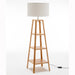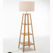 Eiffel 3 Tier Natural Wood Floor Lamp w/ Storage Shelves + Off White Linen Shade