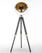 Introduce a touch of sophisticated, functional art to your space with the Premium Tripod Spotlight Lamp. This nautical-inspired designer floor lamp features a distinctive matte black finish with a contrasting gold interior, offering a blend of classic style and modern flair. Its tripod design, crafted from pine wood and iron, not only adds stability but also enhances its aesthetic appeal.
