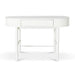 Engineered wood with natural oak veneer Solid natural wood legs NC painting Functional and aesthetic Contemporary rounded edges Pull-out drawer Ribbed textured detailing Weight Capacity: 80 kg Product is flat packed and requires two-person assembly Note: Please note that white tones may be affected by the lighting in the room.