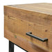 Natural reclaimed pine wood Black powder coated metal legs Drawers on timber drawer slides with metal handles Minor assembly required Note: The timber used in this range is reclaimed elm timber. Each handmade piece will naturally have distinctive characteristics such as; cracks, splits and imperfections due to the nature of the wood. Any variations in colour, texture and pattern are not faults but should be appreciated. Differences between shipments are to be expected.