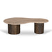 Marvel travertine tabletop Bean-shaped top Thick cylindrical legs Mango wood legs with walnut finish Weight Capacity: 20 kg Minor assembly required Travertine marble is a natural stone which will have unique imperfections and characteristics Any variations in colour, texture, polish and patterns are not faults Travertine marble is porous; wipe away any liquid spills immediately using water or a mild cleaner to avoid marks. Placemats and coasters are recommended Differences between shipments is to be expected