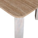 Marvel travertine tabletop Rectangular top with curved edges Ample surface area Natural stone patterns showcased 4 thick rectangular mango wood legs Weight Capacity: 25 kg Minor assembly required Note: Melbourne Pick-up and Delivery Only Travertine marble is a natural stone which will have unique imperfections and characteristics Any variations in colour, texture, polish and patterns are not faults Travertine marble is porous; wipe away any liquid spills immediately using water or a mild cleaner to avoid marks. Placemats and coasters are recommended Differences between shipments is to be expected