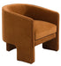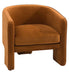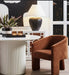 Boasting a curvaceous silhouette that resonates with ongoing trends, the Kylie arm chair, upholstered in a luscious caramel velvet, features fully upholstered tripod legs and detailed piping. Inspired by mid-century modern design, it’s contemporary curves and sleek tailored finish infuses any interior with enviable style.