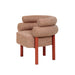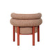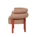 The Sandy Red Armchair in Russet Brown combines playful geometry with modern sophistication, creating a standout piece for any interior. Its rolled backrest and arm design add a sculptural touch that’s both bold and inviting.