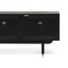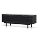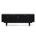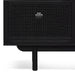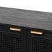 Enhance your living space with the striking 1.7m ELM TV Entertainment Unit in full black, featuring organic rattan doors and ample storage compartments. The combination of matte black New Elm wood and brass brushed handles creates a modern yet timeless look, while the woven rattan adds an organic touch. Designed for both style and function, this unit offers three spacious compartments with adjustable shelves and cord management cutouts, making it perfect for organising your media essentials. Fully assembled and ready to use, this unit serves as a sophisticated centerpiece in any living room.