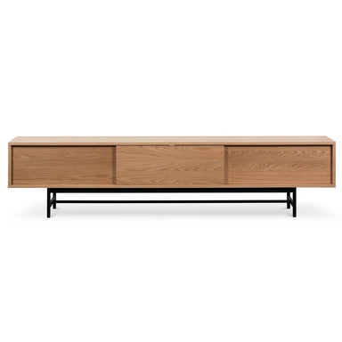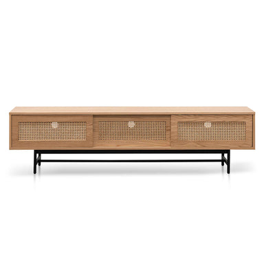 Introduce modern coastal charm to your living space with the Debora 2m Natural Oak TV Entertainment Unit. Featuring rattan weave sliding doors and ...