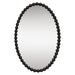 Inspired by vintage glamour, the Esme oval wall mirror has been reinterpreted for modern living with its bold 51 x 76cm oval iron frame embellished with oversized round beading in a chic matte black painted finish. Effortlessly timeless, the striking simplicity of the Esme oval wall mirror in black easily blends with both contemporary and classic interiors, adding a subtle sense of playfulness. Also available in gold leaf.