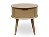 Practical and charming, the CCF696-VN Scandinavian Lamp Side Table is the perfect piece to place by the bed, boasting a solid and compact circular design with one drawer. Skillfully crafted from solid oak with a highly versatile natural finish, this stylish table is easy to mix and match. Featuring a scalloped drawer handle and tapered legs, this charming piece incorporates eclectic yet functional design accents that will surely add interest to your living space.