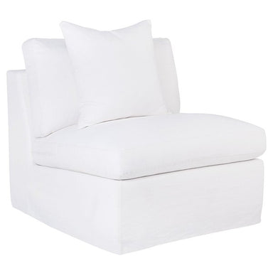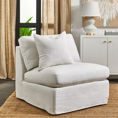 White linen slip cover occasional chair without arms. Comfortable soft seating and back with feather and foam fill. Solid hardwood frame with inne...