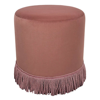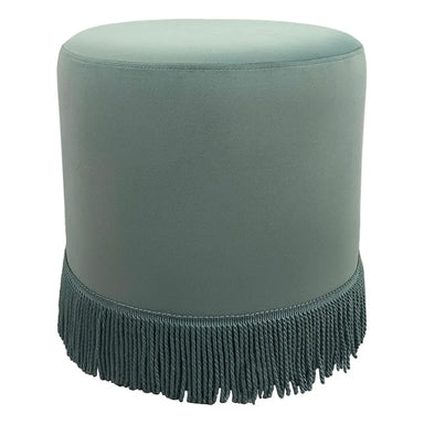 Introduce a touch of elegance to your space with this round velvet fringe ottoman, available in soft pink, ivory, and duck egg blue velv...