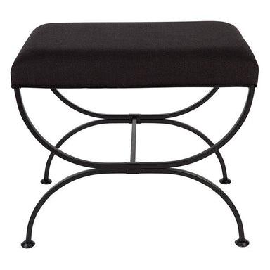 The Novak Black Iron Stool - Black Linen is a natural linen and viscose upholstered stool. Cross leg style made with solid iron powderco...
