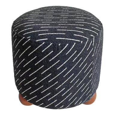 Elevate your home with this modern jacquard ottoman, featuring a playful diagonal pattern and sturdy wooden ball legs. Available in black...