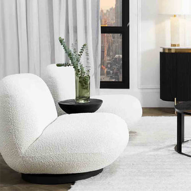 A true indulgence with black onyx boucle upholstery on a 360-degree swivel action matt black finished stainless steel base, the Felicity swiv...