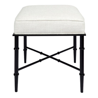 This versatile stool features gorgeous banded bamboo-inspired iron legs in a matte black finish. Filled with foam, its natural linen blend cushio...
