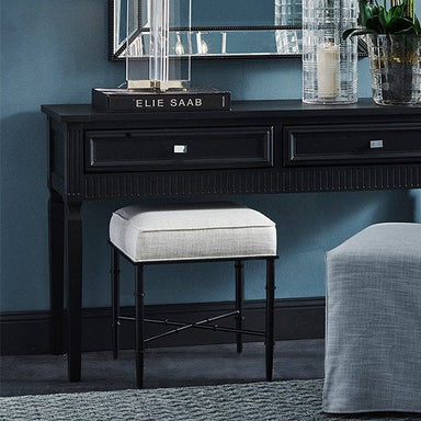 Upholstered in a sumptuous black velvet fabric, the perfectly proportioned Demi stool lends a sense of sophistication to any space. Designed with a...