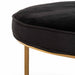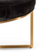 Stainless steel legs and base with a brushed gold finish Upholstered in a black 100% polyester velvet fabric Circular cushioned seat with foam and fibre filling Feet protectors included to prevent slipping and product damage Product comes fully assembled. Note: Due to the nature of brushed gold finishes, any variations in colour, texture, and polish are not a fault and should be appreciated. Brushed gold is expected to have a tarnished look to evoke a vintage, aged character. Contact with liquids, such as a damp cloth, may cause the brushed gold to mark. We recommend using a dry, clean cloth to protect the integrity of the finish.