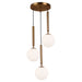 Featuring a trio of glass spheres floating asymmetrically beneath an elegant brushed brass finished cup and cylindrical rods, the Chapel pendant references Mid-Century-Modern design and entices with its contemporary simplicity. Creating a sculptural statement, the Chapel pendant would be perfectly placed in a stair well or as a chic dining table centrepiece, creating a warm and romantic atmosphere with its gentle illumination.