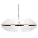 Grand in size and sculptural form, the Lawrence pendant finds a sense of balance between exceptional elegance and extraordinary drama. Crafted with hundreds of clear glass rods delicately dangling from a polished brass frame, the design echoes art deco glamour. The Lawrence pendant commands any living space