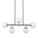 Art Deco forms are reimagined with a modern minimalist sensibility in the Maddox collection. Opal glass spheres have been symmetrically placed across a black frame, with Antique brass accents adding the perfect amount of polish and contrast.