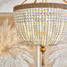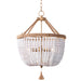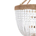 Bearing traditional form, our Malabar pendant is given a uniquely organic style. Eclectically draped in white wooden beads over an antique gold finished iron framework delicately wrapped in natural rope and complimented with a coordinating tassel hanging from its core. The Malabar collection blurs the lines between modern and classic style ceiling lighting, providing the ultimate timeless adaptability as the style and needs of your space alter.