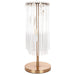 Simply spectacular, hand crafted crystal rods cascade effortlessly over a plated brass frame, hanging in modest harmony. A slender take on the popular Zara pendant, the Zara table lamp provides a delicate diffused glow as the play of light is reflected through its elegant crystal rods. Referencing the decadent Art Deco era, the Zara table lamp offers a modern interpretation of timeless glamour.