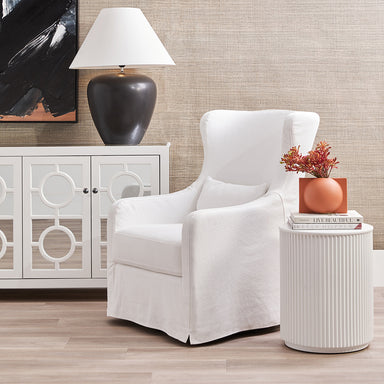 Make a bold statement with this fluted side table, available in three sophisticated finishes: black, white, and walnut. Featuring a smooth traverti...