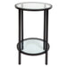 The Cocktail range is the perfect collection for adding a touch of class and function to your home with a slender and open design. Crafted with an iron frame in a myriad of finishes. The Cocktail round side table is an elegant piece for a refined home with petite proportions finished with a black powdercoated frame, accented by inlaid bevelled-edge glass. Place a pair of these charming side tables on either side of the sofa, or bed for both beauty and practicality.