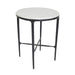 Introducing the Heston Round Marble Side Table in Black, a timeless and elegant addition to any space. Handcrafted by skilled artisans, this side table features a hand forged iron frame and a stunning white marble top sourced from Greece. The combination of rustic and organic elements creates a unique and sophisticated look.