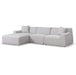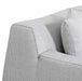 Upholstered in a passive grey fabric Fabric consist of 78% polyester, 12% cotton, 8% viscose and 2% acrylic blend Constructed from timber pine wood and polypropylene base Spring and elastic ribbon suspension High density foam filling and low-line design Includes 2x matching scatter cushion Soft-medium seating firmness Minor assembly required