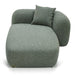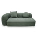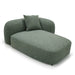 81% polypropylene and 19% polyester upholstery Pinewood frame construction Rubber legs Spring suspension system Foam filling with soft-medium seat firmness Amazon green fabric Curved sculptural design Right-facing chaise Distributed weight capacity of up to 480 kg Minor assembly required