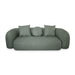81% polypropylene and 19% polyester upholstery Pinewood frame construction Rubber legs Spring suspension system Foam filling with soft-medium seat firmness Amazon green fabric Curved sculptural design Perfect for smaller spaces Distributed weight capacity of up to 360 kg Minor assembly required