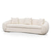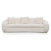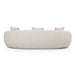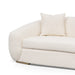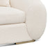 Ivory white boucle fabric upholstery 95% polyester and 5% acrylic Pinewood timber body construction Stainless steel base with gold finish Foam filling with web and spring suspension Medium-soft firmness Rounded contour design Weight capacity: 450 kg Product comes fully assembled