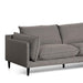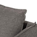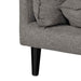 Upholstered in a polyester fabric with a graphite grey finish Frame and detailing in a solid timber construction Back, seat, and armrest with a premium foam and feather insert Includes spring and web suspension for lasting structural support Short and tapered legs in wood construction with a black finish Inverted seaming details along cushion edges Minor assembly to attach legs to base