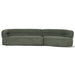 Coral Dark Green polyester upholstery Pine wood frame Web and spring suspension Beech wood legs Foam filling Soft-medium seat firmness Rounded shape Subtle tufting Electric drill recommended for leg assembly Weight Capacity: 200 kg Minor assembly required